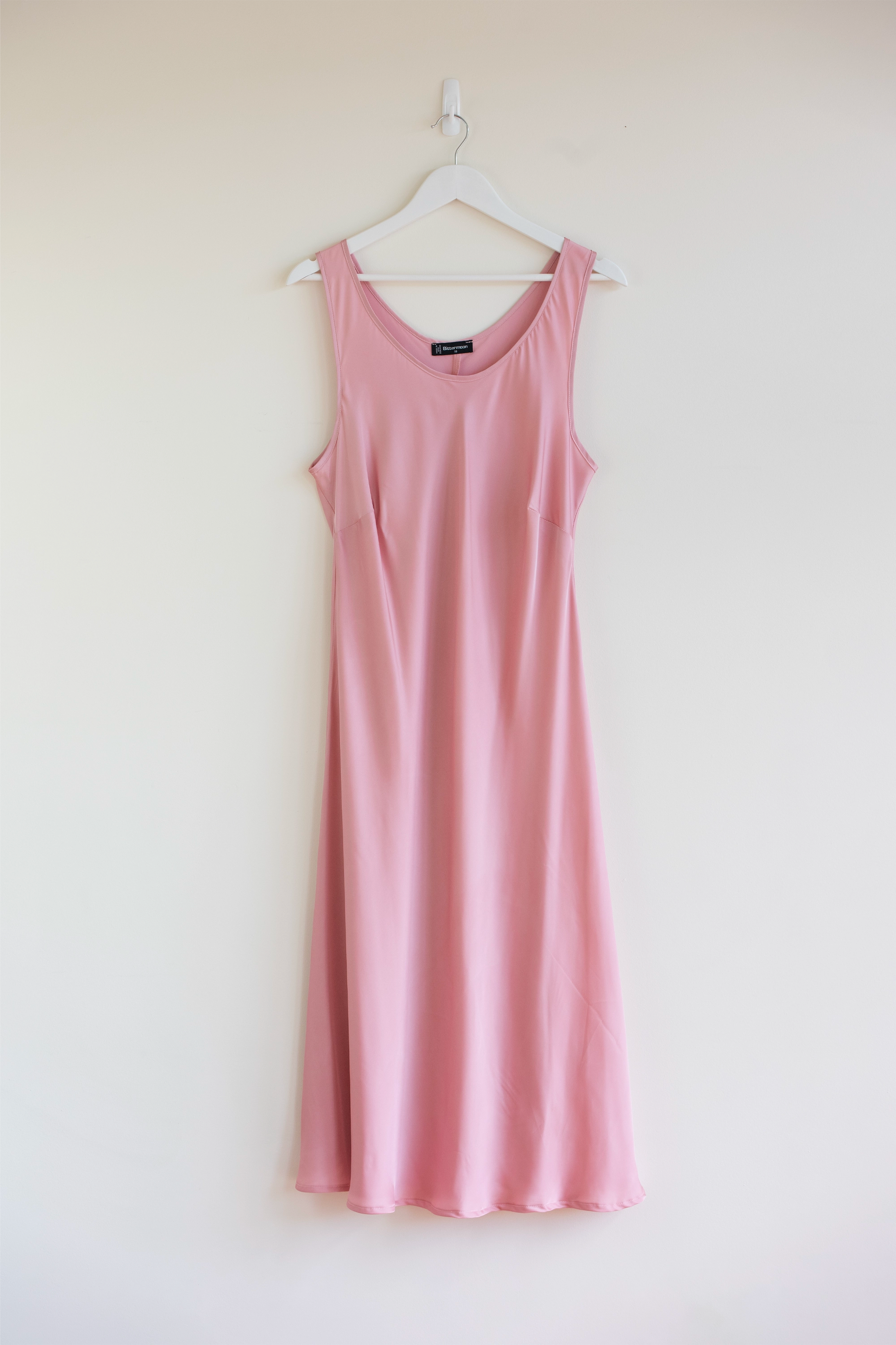 Made from soft, stretchy satin, this bias-cut slip dress falls just below the knee, offering a flattering and elegant silhouette. Its versatile design works beautifully as a standalone piece or layered for added style.
