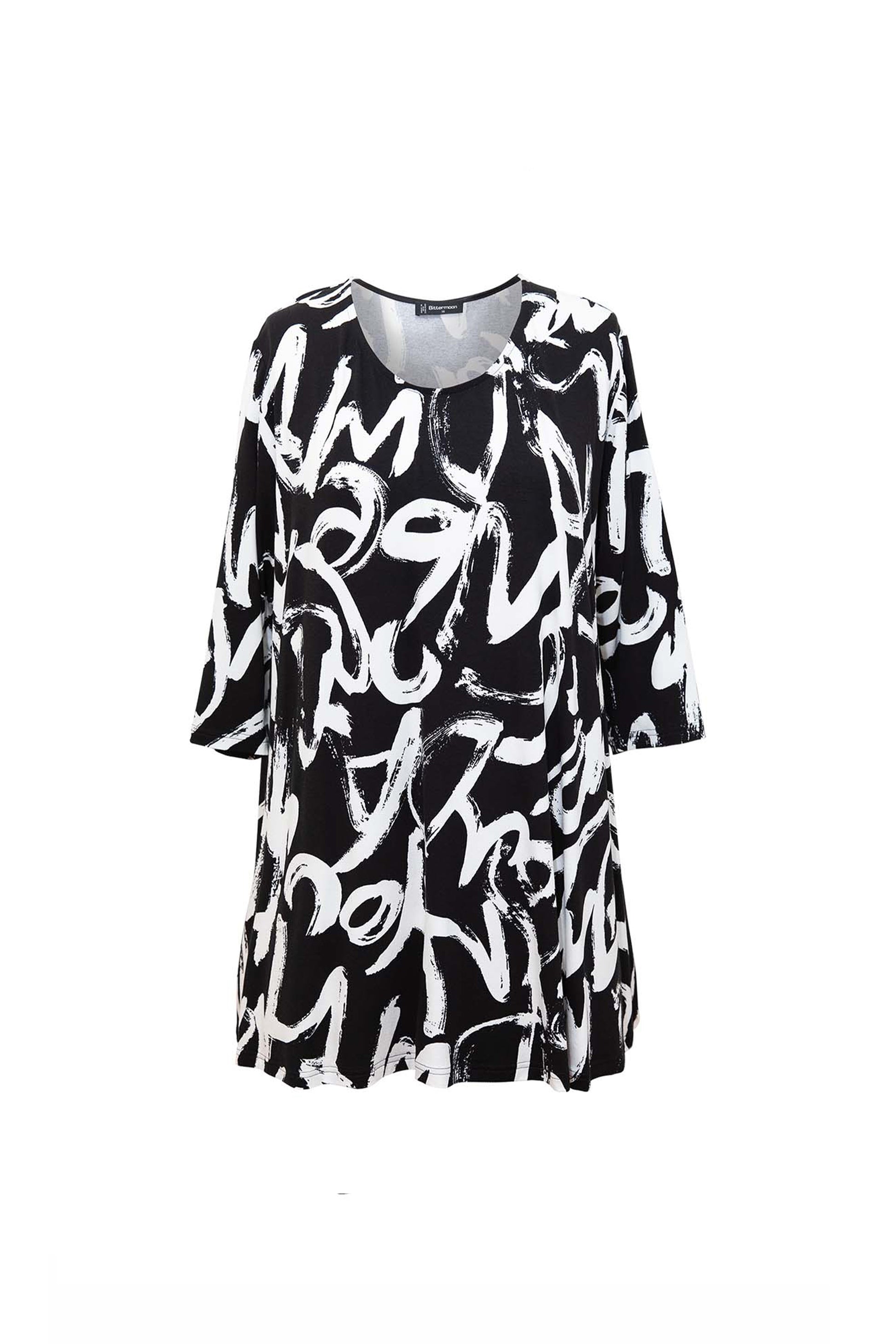 An elevated essential with an artful edge. The Runaway Top in Cube features our signature relaxed fit in a soft stretch knit with an abstract black-and-white brushstroke print. Designed with a round neckline, elbow-length sleeves and a flattering flared silhouette that skims the body just so. Pair with your go-to black pants or layer under a jacket when the weather cools.