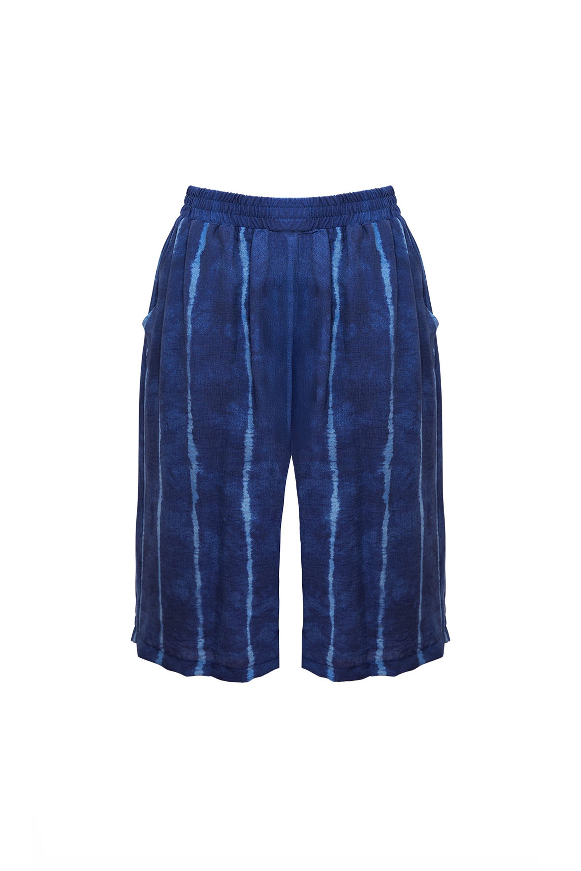 A relaxed summer essential with an easy drape and soft texture. The Sandy Short is crafted from breathable viscose and features an elasticated waistband, pockets, and a wide-leg silhouette for all-day comfort. The deep indigo tie-dye effect adds a subtle statement—perfect paired with a plain tee or matching print.