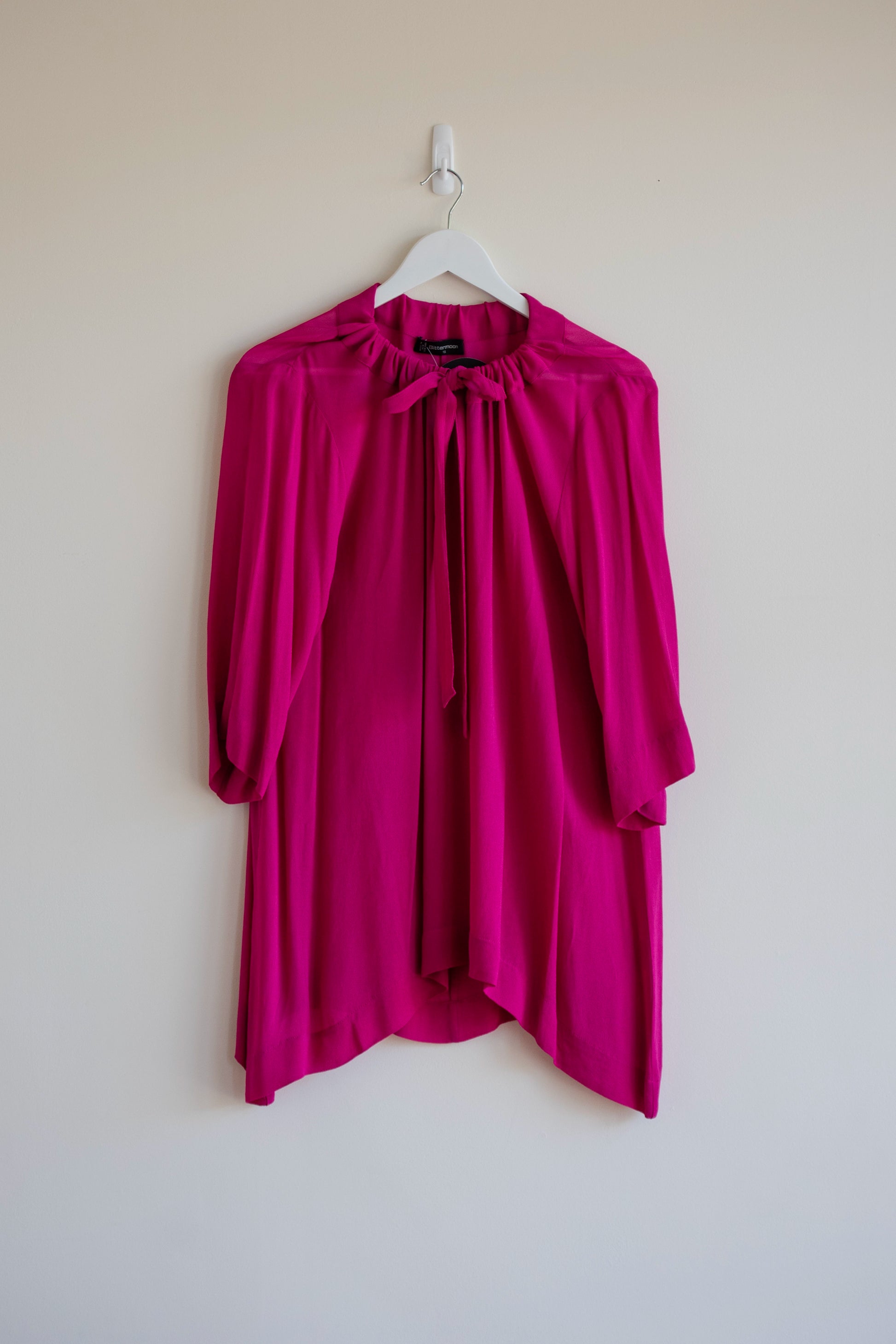 The Valencia Top offers endless styling possibilities. Made from semi-sheer viscose in a hot pink, this fit-and-flare design features a drawstring neckline that can be styled on or off the shoulder.
